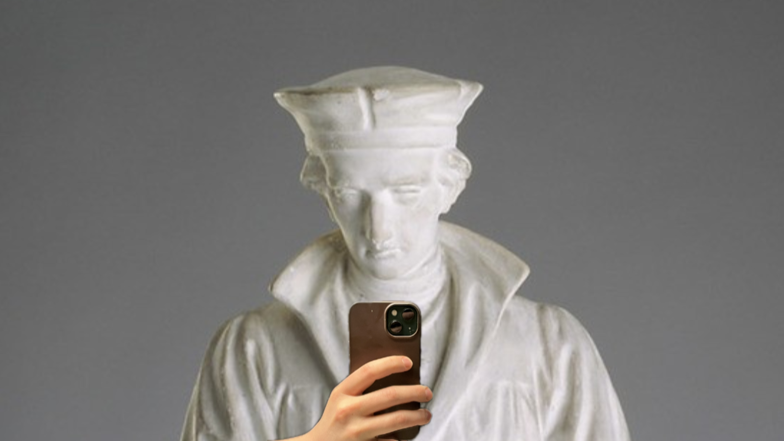 Carl Eneas Sjöstrandin kipsiveistos Mikael Agricolasta. Kuva: Kansallisgalleria, Ateneumin taidemuseo. 1.0. Muokkaus Oskari Niskanen, Kotus
