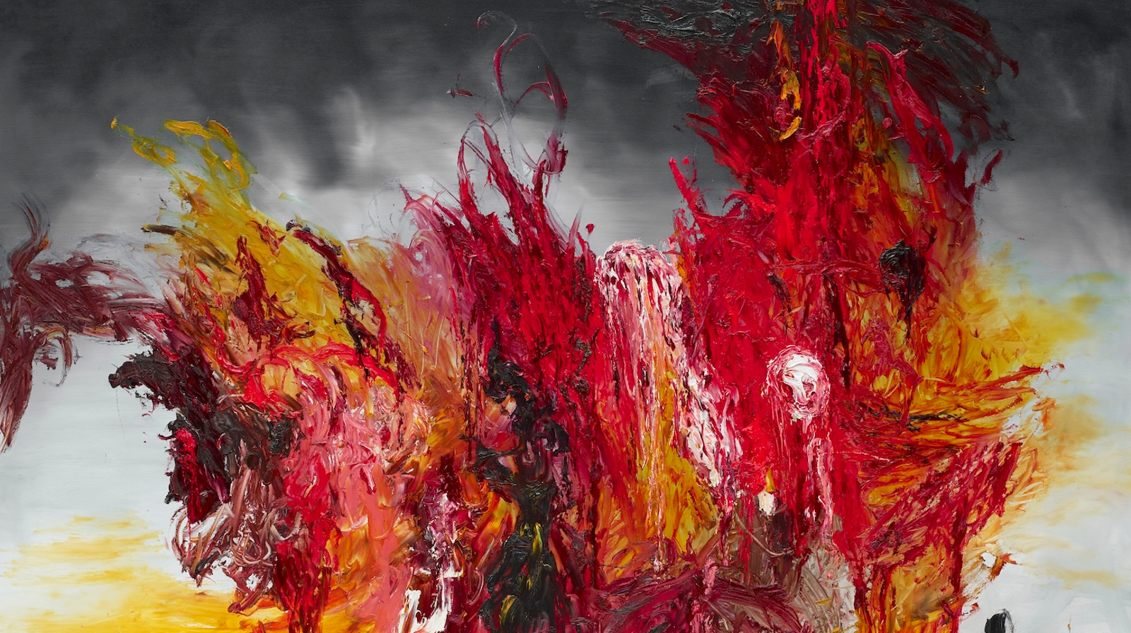 Toisessa näyttelytilassa nähdään suurikokoisia ja ekspressiivisiä maalauksia, jotka hehkuvat punahehkuista laavaa tai verta. Kapooria askarruttavat metafyysiset vastakohdat: sisäinen ja ulkoinen, kauneus ja kauhu, syntymä ja kuolema. Maalaukset eivät esitä mitään, ne ovat enemmän tekoja kuin kuvia.